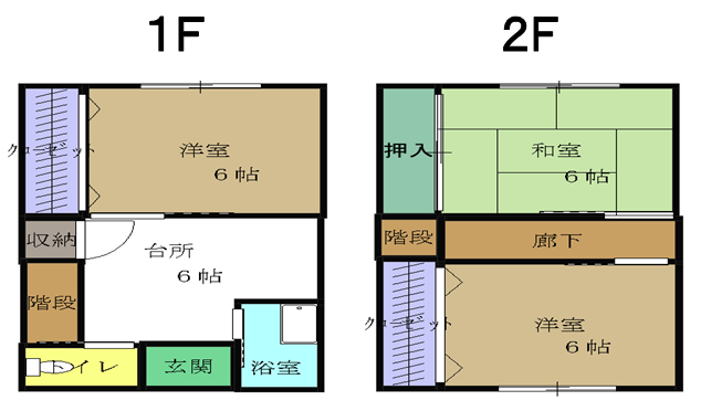 | 間取内訳 | 和室6帖・洋室6帖(二部屋)・台所・浴室・トイレ |